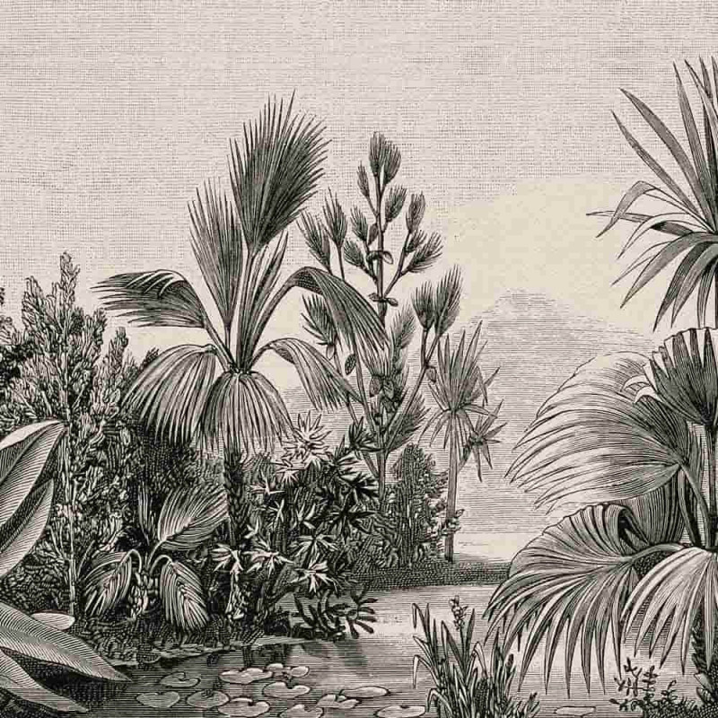 Transformez votre intérieur avec le papier peint panoramique en vinyle sur intissé jungle beige AS CREATION. Mesurant 371 cm de largeur sur 280 cm de hauteur, ce somptueux revêtement mural capture une jungle tropicale où les palmiers se reposent paisiblement au bord de l'eau, avec des montagnes en arrière-plan. Décliné en noir et blanc, il apporte une touche chic et élégante à votre décoration. Composé de sept lés panoramiques, ce papier peint crée une ambiance immersive et raffinée. Durable et facile à poser, c'est la solution idéale pour donner à vos murs une allure sophistiquée et intemporelle.