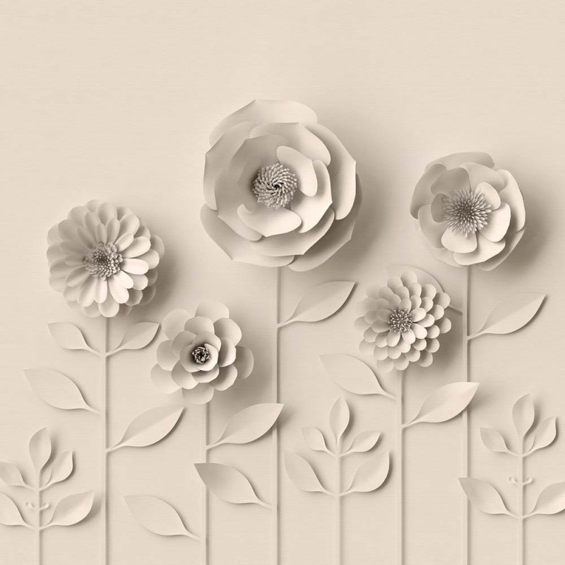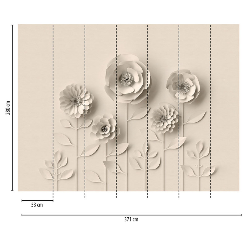 Papier peint panoramique en vinyl sur intissé floral 3D beige L 371 x H 280 cm AS CREATION