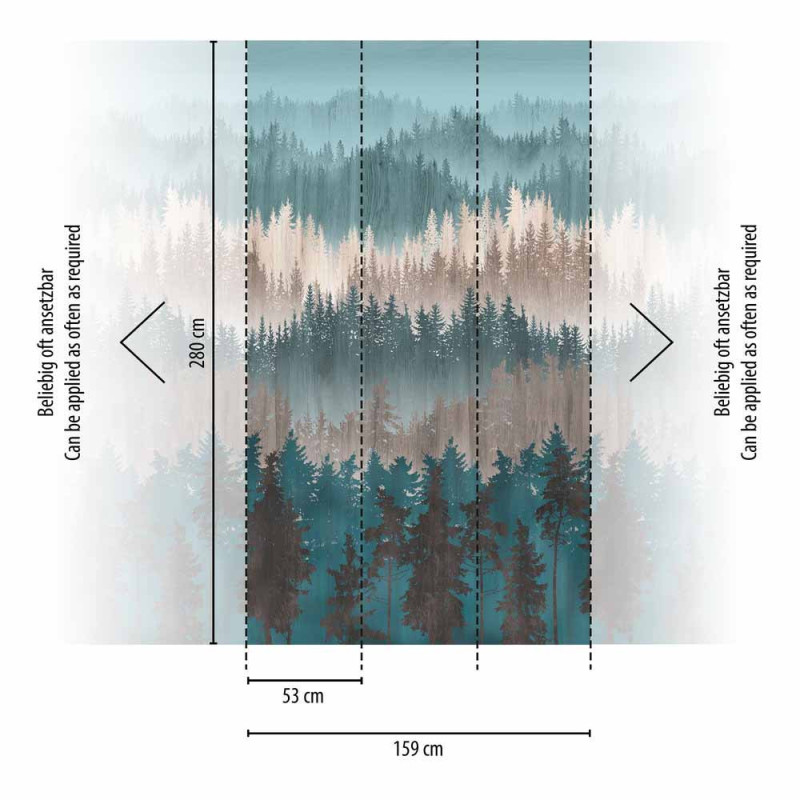 Papier peint panoramique en vinyl sur intissé forêt bleu L 159 x H 280 cm AS CREATION