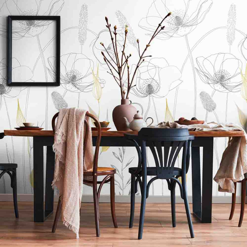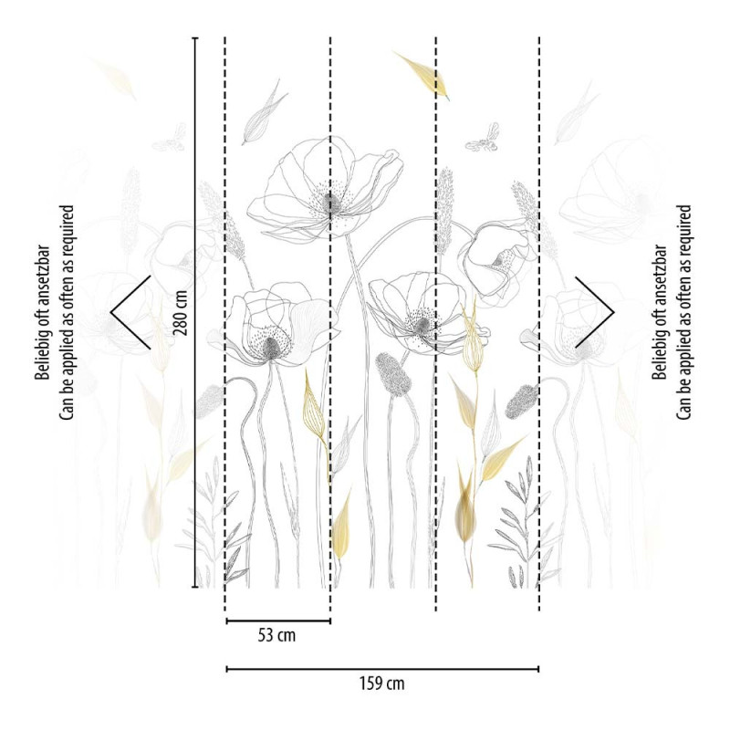 Ajoutez une touche de douceur à votre intérieur avec le revêtement panoramique en vinyle sur intissé coquelicot jaune AS CREATION. Mesurant 159 cm de largeur sur 280 cm de hauteur, ce revêtement mural évoque un délice champêtre ou un décor d'Alice au pays des merveilles, avec de grands coquelicots noirs et blancs rehaussés d'une touche de doré. Composé de trois lés panoramiques, il apporte à votre pièce tout le mystère et la beauté de la nature. Facile à poser, ce papier peint est idéal pour créer une ambiance élégante et enchantée dans votre décoration intérieure.