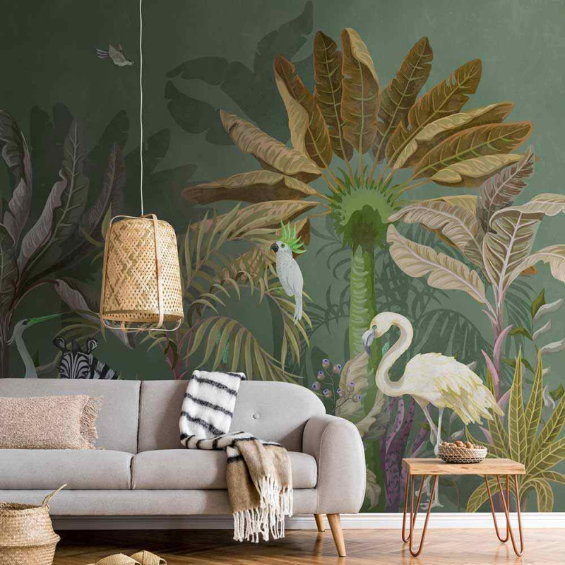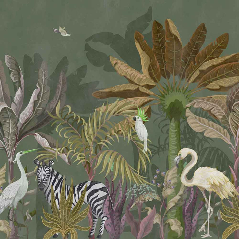 Papier peint panoramique en vinyle sur intissé savane vert L 371 x H 280 cm AS CREATION