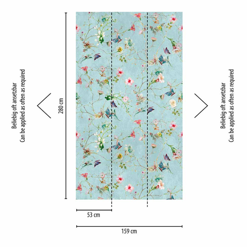 Papier peint panoramique en vinyle sur intissé romantique bleu L 159 x H 280 cm AS CREATION