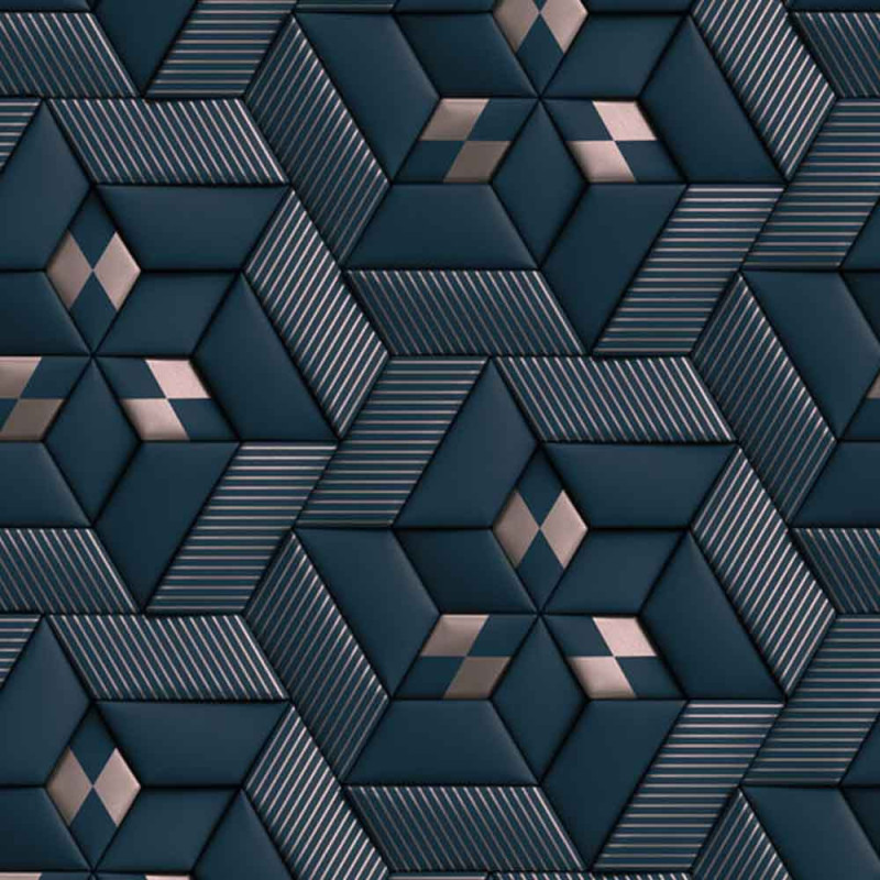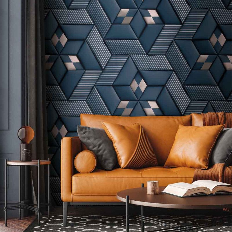 Apportez une dimension unique à vos murs avec le papier peint panoramique en vinyle sur intissé géométrique 3D bleu AS...