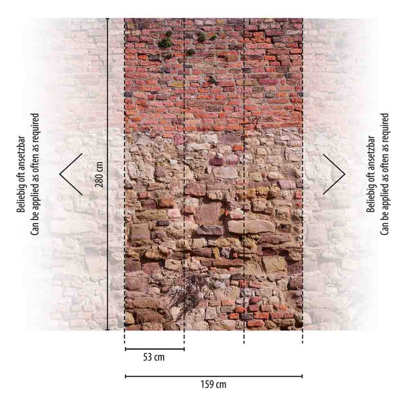 Transformez vos murs avec le papier peint panoramique en vinyle sur intissé au décor brique AS CREATION. Mesurant 159 cm de largeur sur 280 cm de hauteur, ce revêtement mural présente des briques rouges, des pierres naturelles et des joints à la chaux, offrant un aspect vintage authentique à votre intérieur. Composé de trois lés panoramiques et facile à poser, ce papier peint est idéal pour un salon, une chambre...