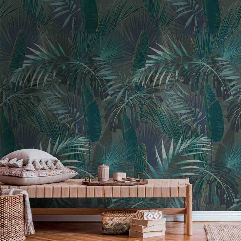 Papier peint panoramique en vinyle sur intissé jungle de nuit vert L 159 x H 280 cm AS CREATION