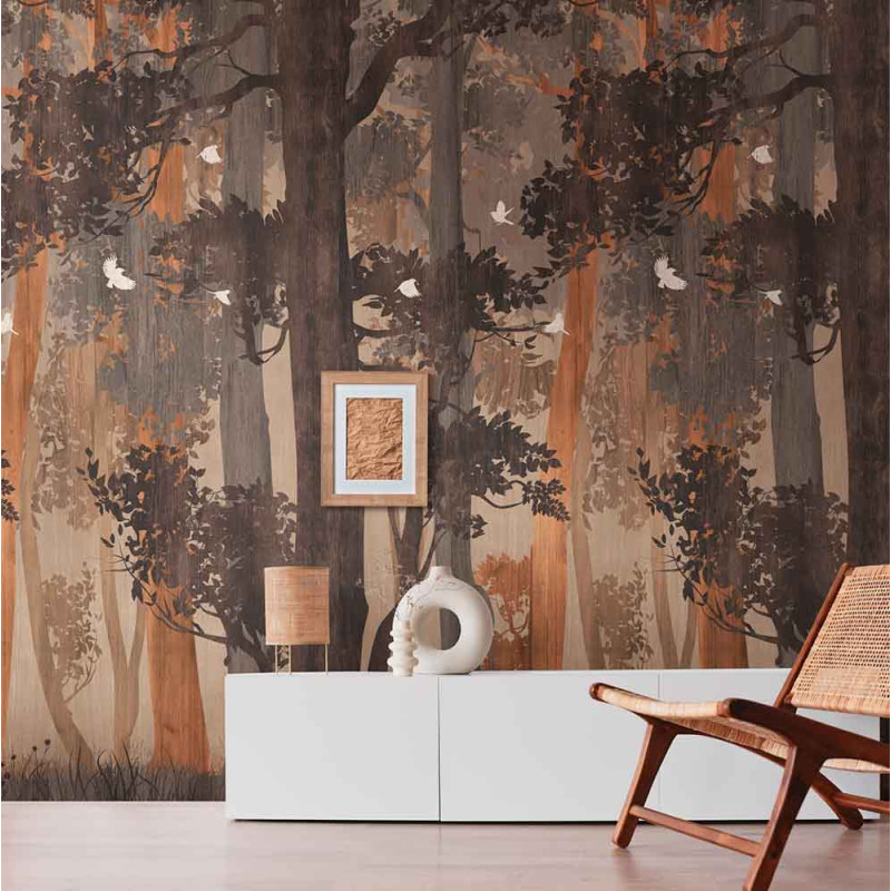 Papier peint panoramique en vinyle sur intissé forêt orange L 159 x H 280 cm AS CREATION