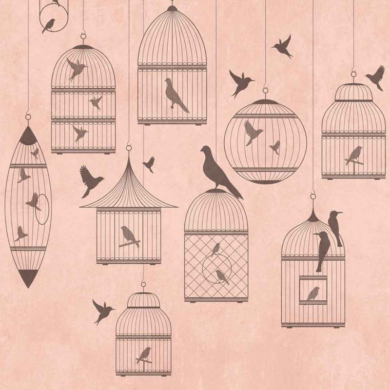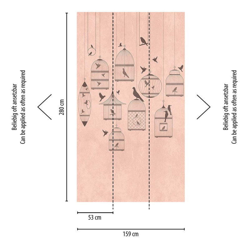 Papier peint panoramique en vinyl sur intissé Cage à oiseaux rose 280 H x 159 L cm