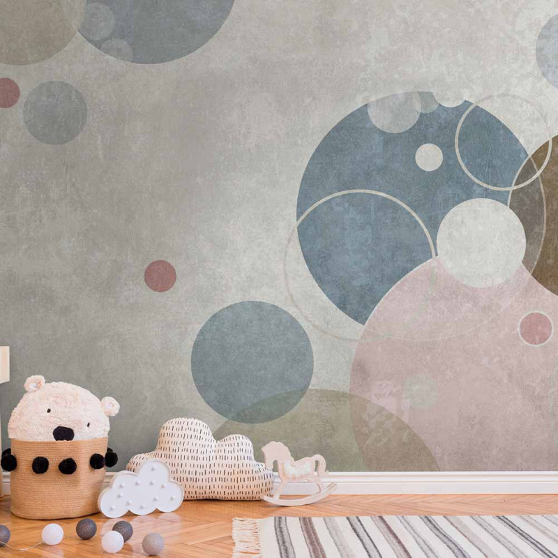 Papier peint panoramique en vinyl sur intissé Bulles pastel gris 371 H x 280 L cm