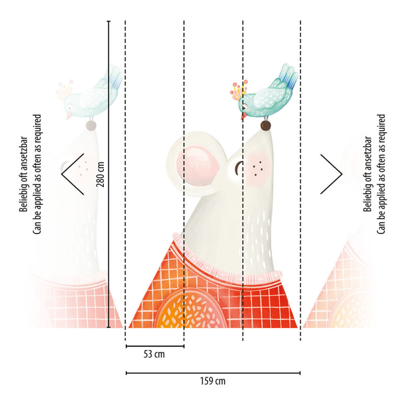 Transformez la chambre de votre enfant en un univers enchanteur avec le papier peint panoramique en vinyl sur intissé Souris Gris. Avec ses dimensions généreuses de 371 cm de hauteur sur 280 cm de largeur, ce panorama mural en 7 lés présente un décor charmant où de petites souris grises se promènent joyeusement. Idéal pour créer une atmosphère douce et accueillante, ce papier peint facile à poser ajoutera une touche de tendresse et de fantaisie à l’espace, stimulant l'imagination des petits et créant un environnement apaisant.