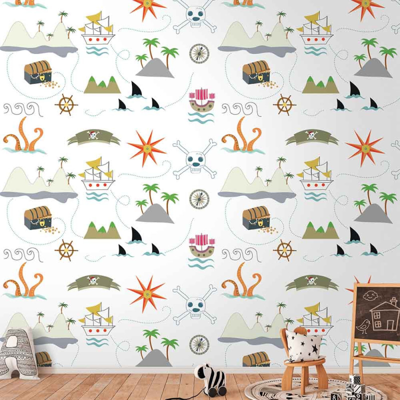 Papier peint panoramique en vinyl sur intissé Pirate multicolore 280 H x 159 L cm