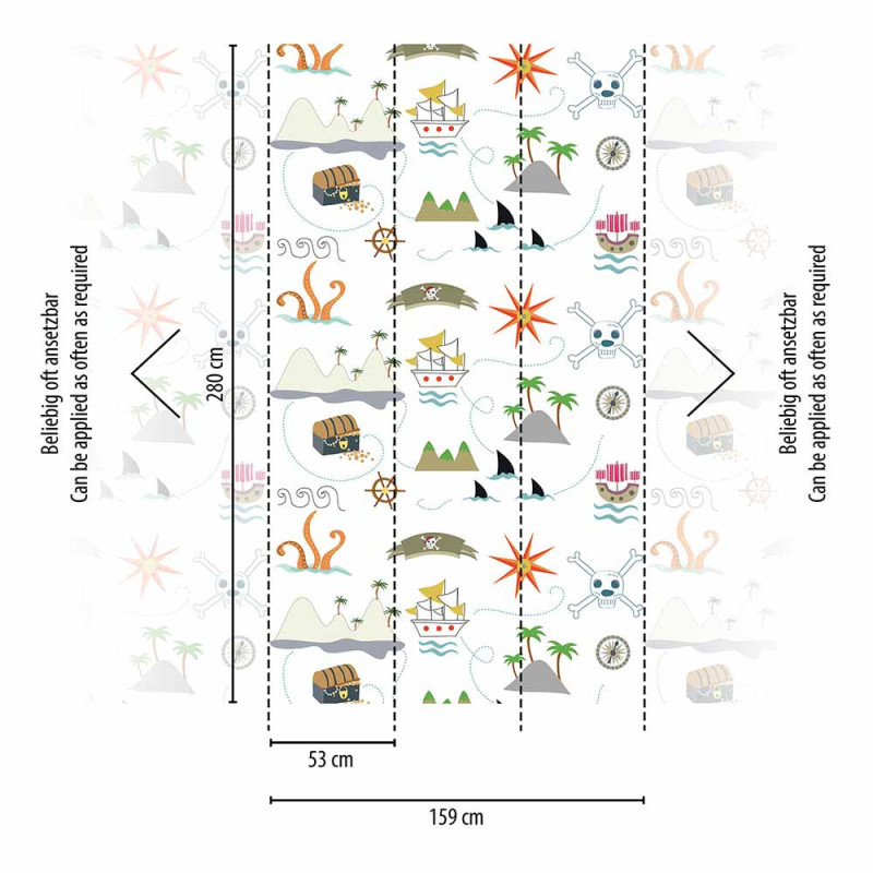 Offrez à la chambre de votre enfant une aventure palpitante avec le papier peint panoramique en vinyl sur intissé Pirate Multicolore. Ce décor panoramique captivant de 280 cm de hauteur sur 159 cm de largeur, divisé en 3 lés, transforme l'espace en un univers de piraterie vibrant et ludique. Avec ses illustrations dynamiques de pirates, de navires et de trésors, il stimule l'imagination de votre petit aventurier tout en ajoutant une touche de couleur et de fantaisie à sa chambre. Facile à installer et conçu pour durer, ce papier peint promet de créer un environnement amusant où les rêves de pirates prennent vie.