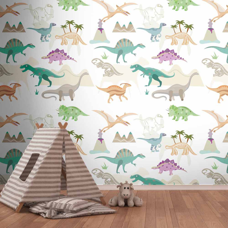 Papier peint panoramique en vinyl sur intissé dinosaure multicolore 280 H x 159 L cm