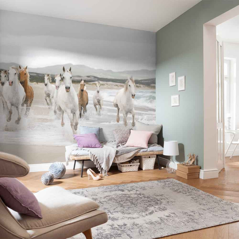 Papier peint panoramique chevaux blanc L368 x H254 cm