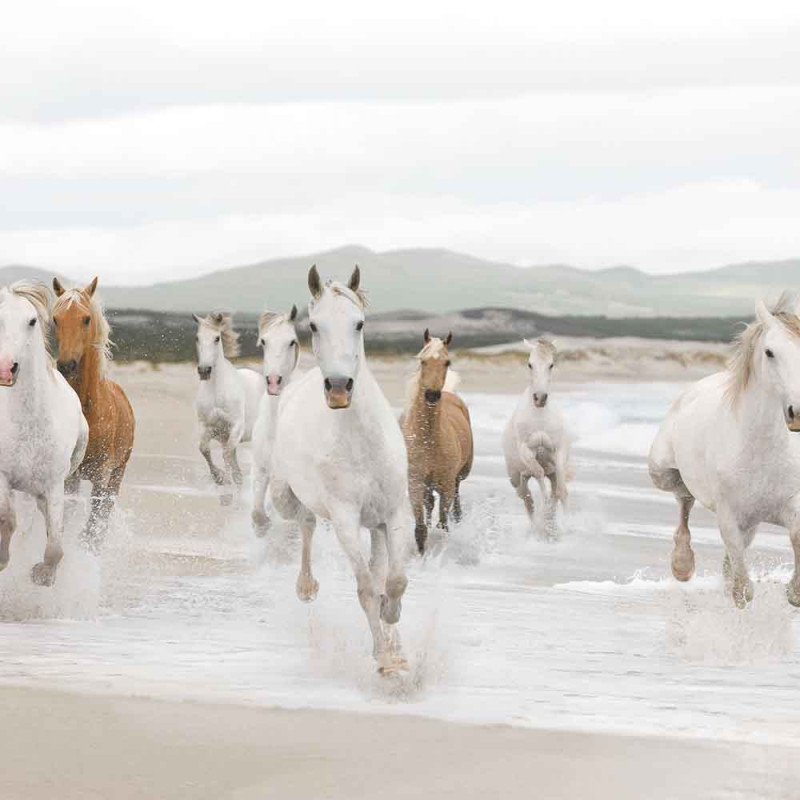 Libérez l'énergie et la liberté avec le papier peint panoramique avec un décor de chevaux blanc (L368 x H254 cm). Cette déco pour le mur capture la majesté des chevaux sauvages galopant dans l'écume des vagues, incarnant puissance et autonomie. Idéal pour insuffler une touche de vitalité et d'élan dans votre salon ou chambre, ce papier peint tendance transforme vos murs en une scène vivante et inspirante. Avec ce panoramique, chaque regard évoque l'aventure et la grandeur, apportant une sensation de liberté et de mouvement à votre espace.