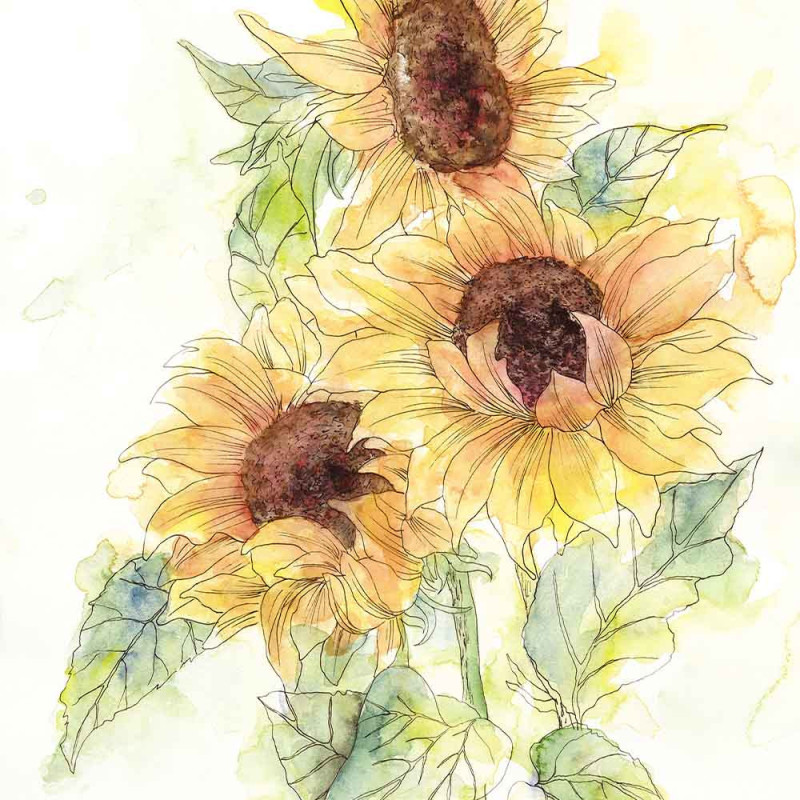 Papier peint panoramique intissé fleur de tournesol jaune L200 x H250 cm
