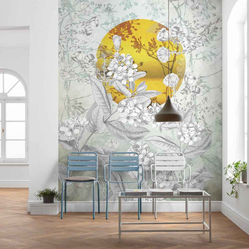 Papier peint panoramique intissé fleur sauvage jaune moutarde L200 x H250 cm
