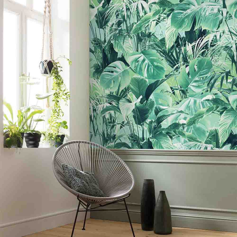 Papier peint panoramique intissé tropical vert 200 L x 250 H cm