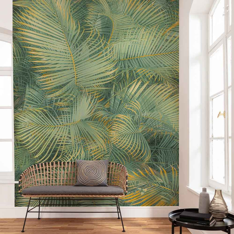 Papier peint panoramique intissé feuillage vert 200 L x 250 H cm