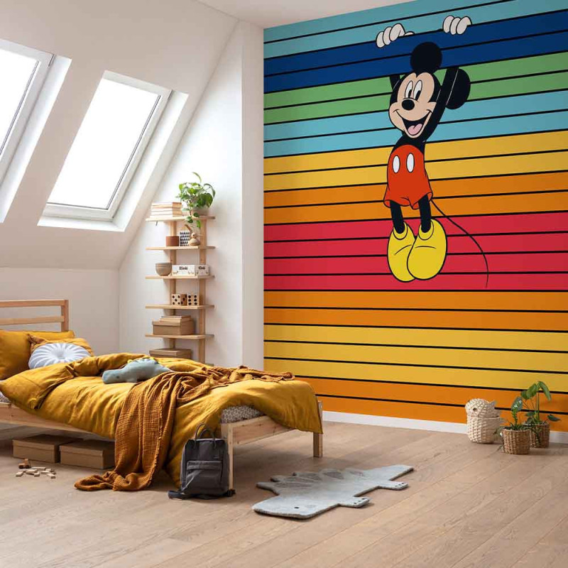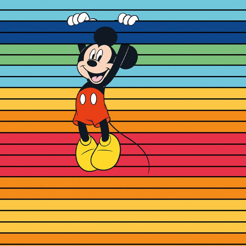 Apportez une touche de joie et de couleur à la chambre de votre enfant avec ce papier peint panoramique intissé Mickey arc-en-ciel (L300 x H250 cm). Ce design dynamique, mettant en vedette le célèbre Mickey Mouse entouré de rayures horizontales éclatantes, diffuse une bonne humeur contagieuse à chaque instant. Avec son motif vif et coloré, ce papier peint fait briller la pièce, rendant toute autre décoration superflue. Facile à poser grâce à sa matière intissée de qualité, il transforme instantanément l’espace en un environnement ludique et accueillant, parfait pour les petits fans de Disney et les amateurs de style joyeux. Un papier peint parfait pour une chambre ou un bureau.