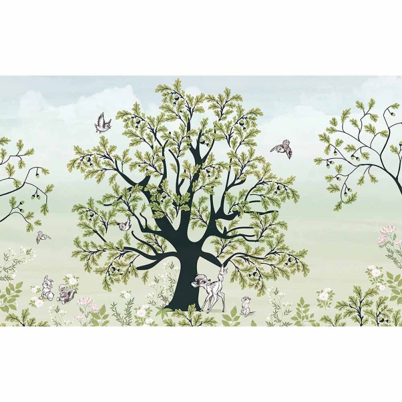 Papier peint panoramique intissé forêt de Bambi vert L400 x H250 cm