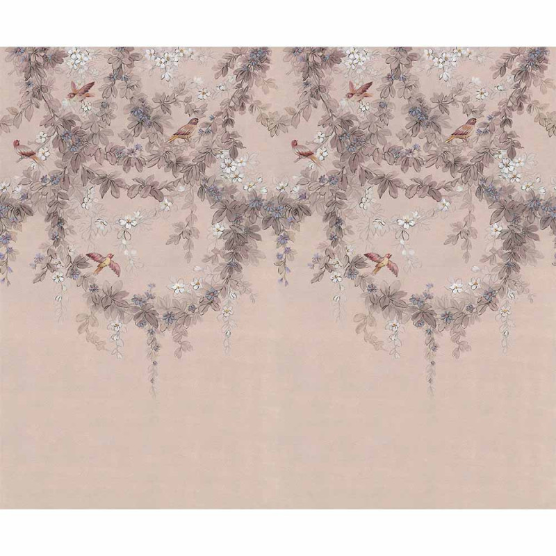 Papier peint panoramique intissé oiseaux rose L300 x H250 cm