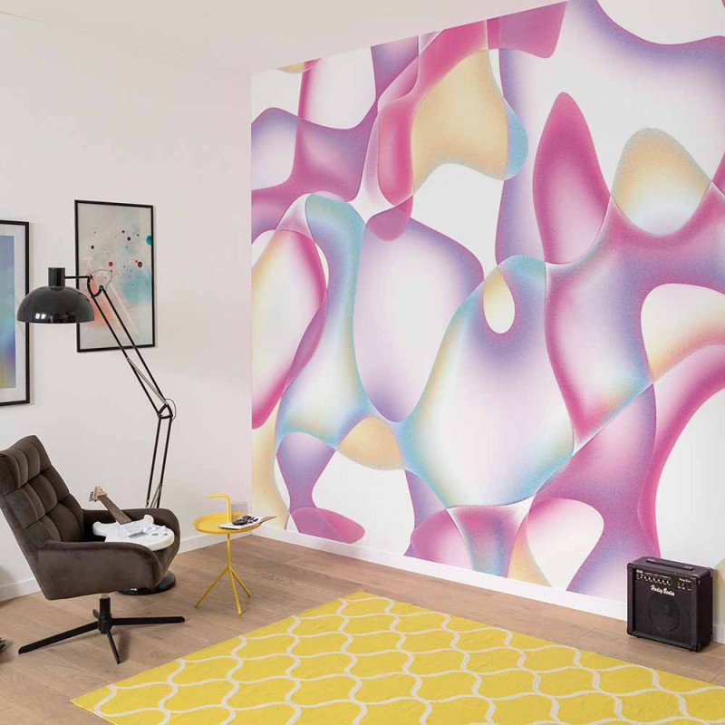 Le papier peint panoramique intissé à forme rose 350 x 250 cm est une pièce maîtresse audacieuse qui apporte une touche de dynamisme à votre intérieur. Avec ses dimensions de 350 cm de large sur 250 cm de haut, il crée un impact visuel fort, transformant n'importe quel mur en un élément de décoration fascinant. Son design à motifs saisissants, inspiré de formes abstraites évoquant des bulles de savon, est rehaussé par une palette de couleurs vives et éclatantes. Cette combinaison de nuances crée une ambiance ludique et créative, idéale pour les espaces de vie modernes, les bureaux ou les chambres d'enfants. Parfait pour ceux qui désirent faire une déclaration audacieuse dans leur maison, ce papier peint panoramique attire inévitablement tous les regards et inspire une atmosphère joyeuse et dynamique.