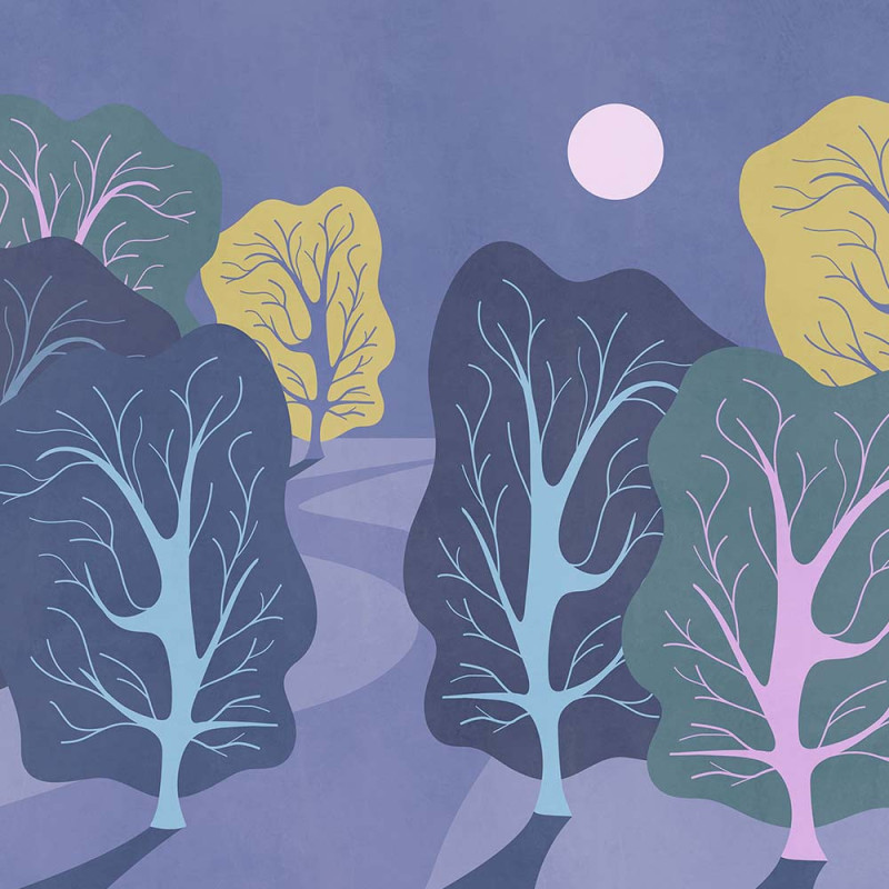 Papier peint panoramique intissé forêt violet L350 x H250 cm