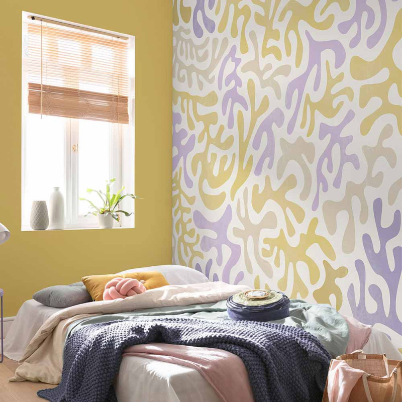 Le papier peint panoramique à forme jaune curry 350 x 250 cm est une œuvre d’art murale qui marie élégance et modernité. Avec ses dimensions généreuses de 350 cm de large sur 250 cm de haut, ce papier peint présente un motif corail délicatement travaillé, s’étendant harmonieusement sur toute la surface. Les douces nuances de jaune et de lilas créent une ambiance apaisante qui invite à la détente. Parfait pour les salons, les chambres ou les espaces de travail, ce papier peint panoramique apporte une touche subtile de sophistication à votre décoration intérieure. Sa palette de couleurs raffinées permet de l'intégrer facilement dans divers styles de décoration, qu’ils soient modernes, bohèmes ou classiques. En choisissant ce papier peint à forme jaune curry, vous faites le choix facile pour raviver votre pièce !