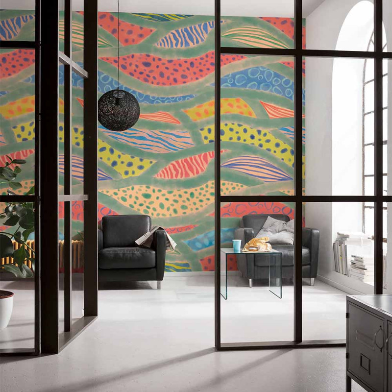 Papier peint panoramique intissé vague multicolore L350 x H250 cm