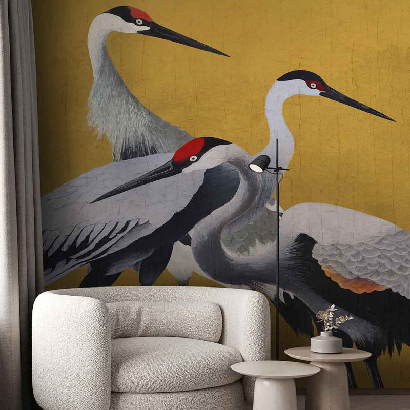 Ce papier peint de grande largeur animaux jaune moutarde, est une véritable ode à la beauté de la nature. Orné de trois grues majestueuses, il capture l'élégance de ces oiseaux fascinants tout en ajoutant une dimension artistique à votre décor. Le doux ton jaune de l'arrière-plan crée une atmosphère chaleureuse. Ce décor mural estune solution efficace et rapide pour changer instantanément l'ambiance d'une pièce ! Ce design unique permet d'établir une communion subtile avec la nature, apportant une touche de fraîcheur et de charme à votre intérieur. Facile à poser grâce à son matériau intissé, ce papier peint offre une manière simple et élégante de rehausser vos murs tout en invitant la beauté de la faune à l'intérieur de votre maison.