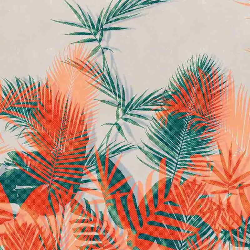 Papier peint panoramique tropical orange et vert L300 x H250 cm