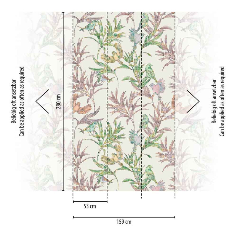 Papier peint panoramique volière végétal multicolore L159 x 280H cm