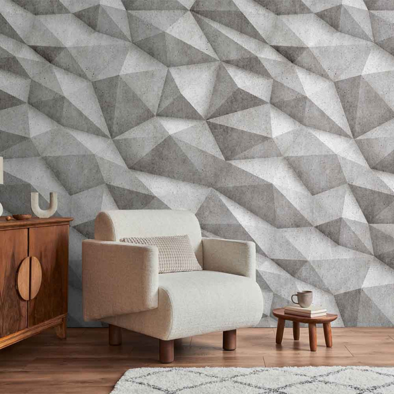 Papier peint panoramique prisme 3D gris L159 x 280H cm