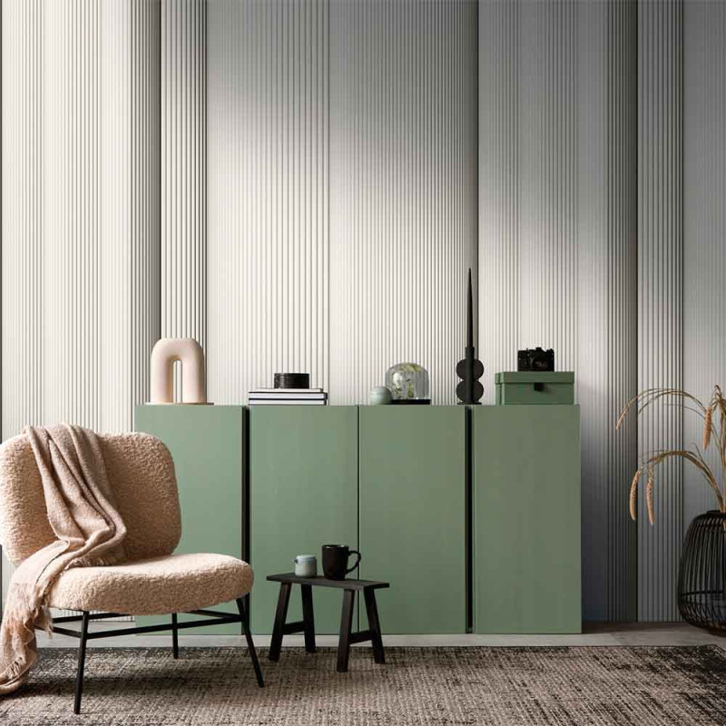 Craquez pour le papier peint panoramique mur ondulé blanc (L159 x H280 cm). Ce décor mural est un choix parfait pour apporter une dimension contemporaine et architecturale à n'importe quel intérieur. Avec ses lignes 3D et ses ondulations subtiles, il crée une texture visuelle captivante qui guide le regard et ajoute de la profondeur à l'espace. Ce décor pour le mur est épuré, composé de plaques blanches striées de lignes verticales grises, apporte une touche artistique, tout en s'intégrant facilement dans différents styles de décoration. Que ce soit dans un salon, une salle à manger, un bureau ou une chambre, il devient un élément central audacieux et élégant. Panoramique 3 lés.