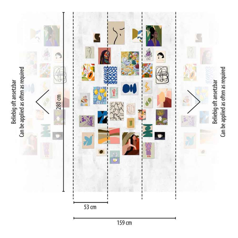 Papier peint panoramique intissé tableaux multicolore L159 x 280H cm