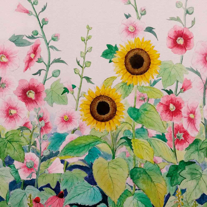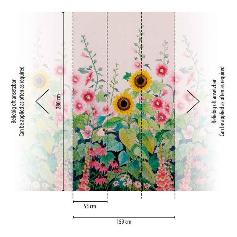 Papier peint panoramique intissé tournesol rose L159 x 280H cm