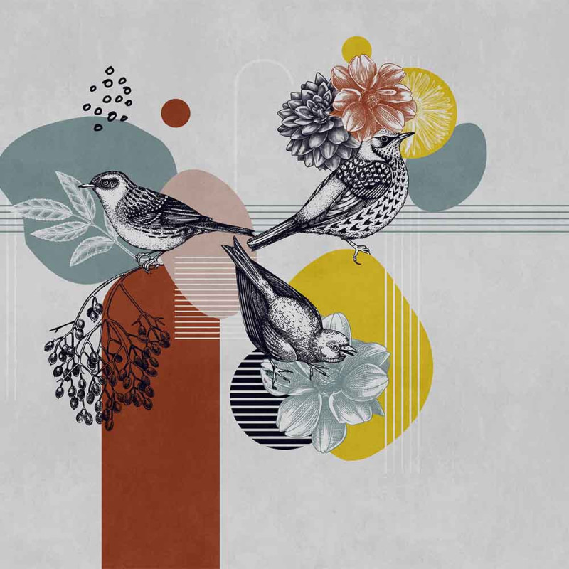 Papier peint panoramique intissé oiseaux blanc 371L x 280H cm