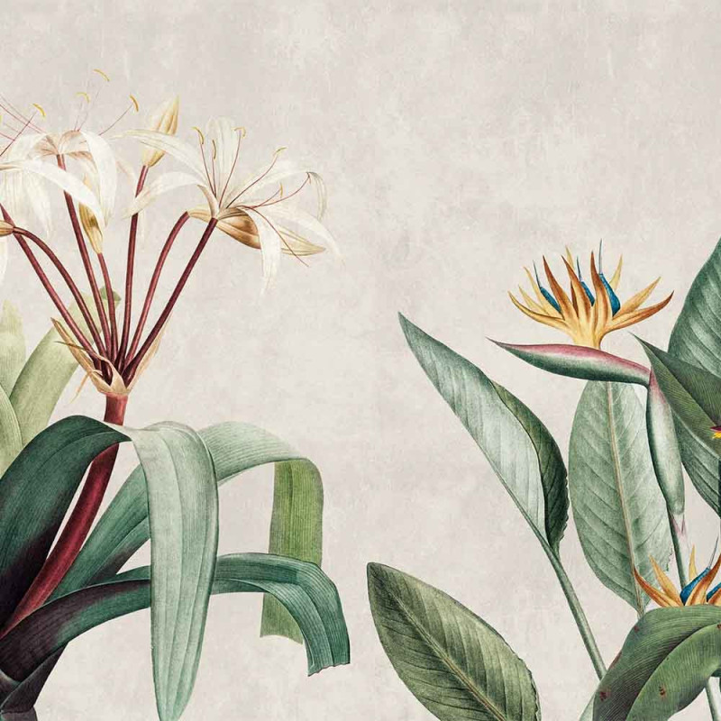 Invitez la nature dans votre intérieur avec notre papier peint panoramique intissé végétal fleurs Guliver beige, aux...