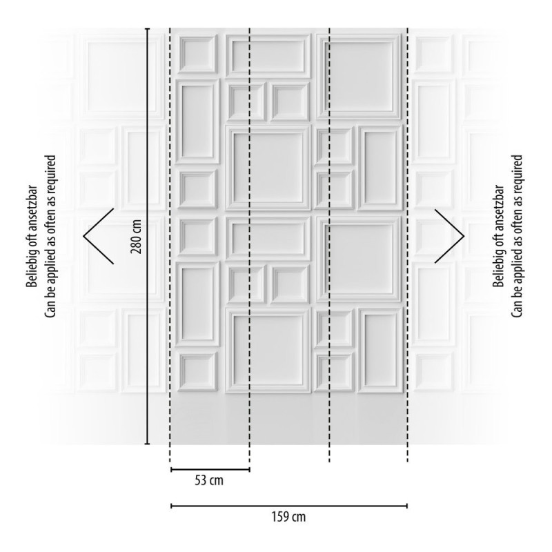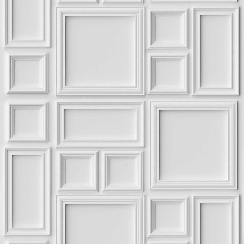Papier peint panoramique intissé moulures blanc 159L x 280H cm