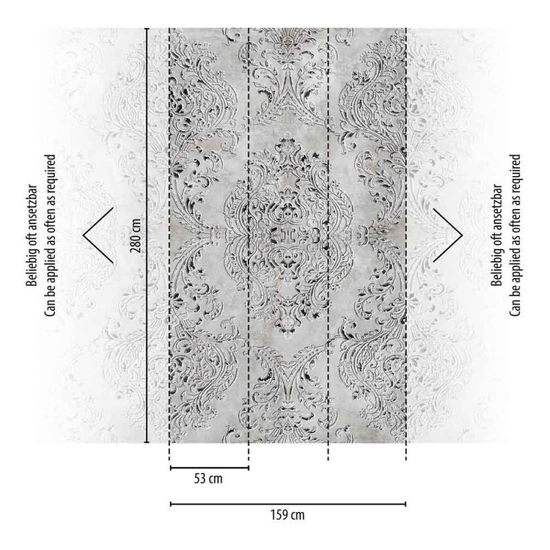 Papier peint panoramique intissé Médicis noir et blanc 159L x 280H cm