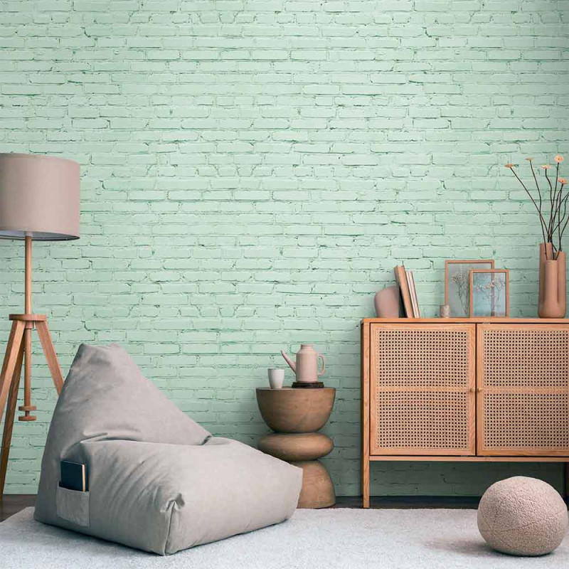 Papier peint panoramique intissé brique vert 159L x 280H cm