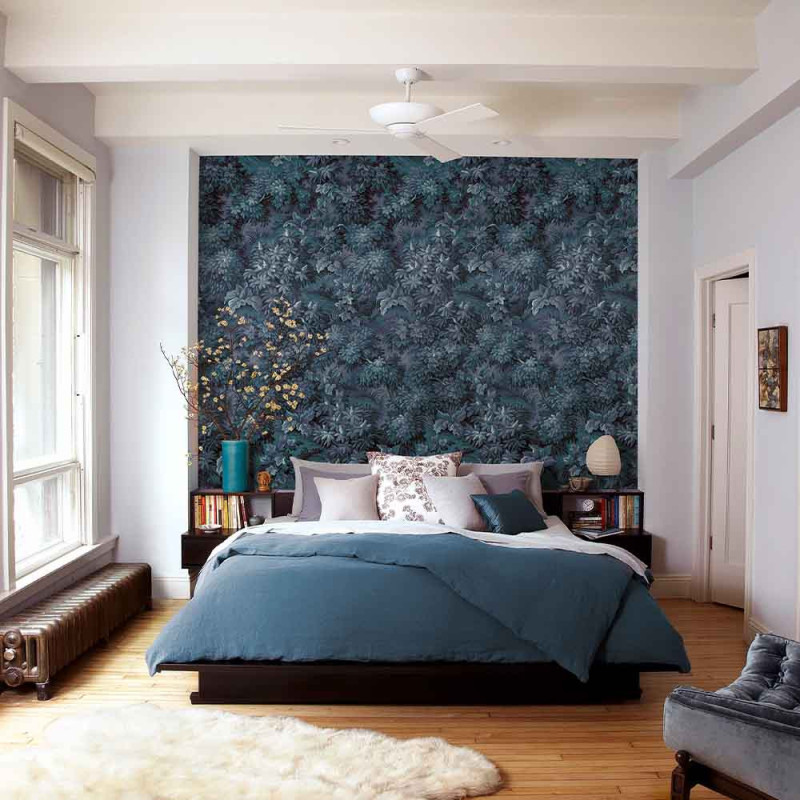Papier peint panoramique intissé Botanique Bleu 300x280cm