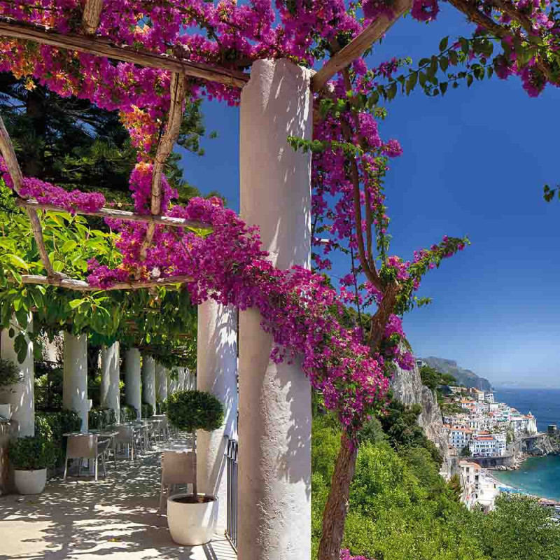 Papier peint panoramique paysage Amalfi rose L368 x H254 cm