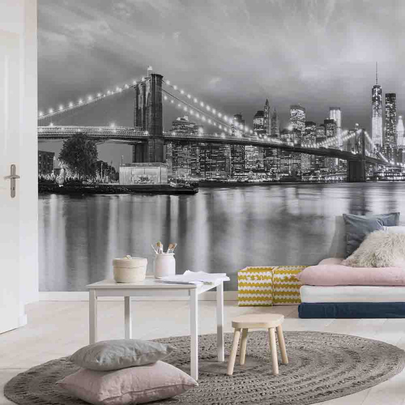 Papier peint panoramique Brooklyn noir et blanc L368 x H254 cm