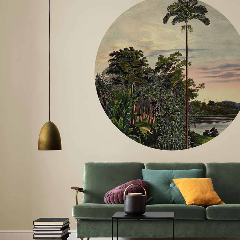 Papier peint panoramique rond intissé végétal vert diamètre 125 cm