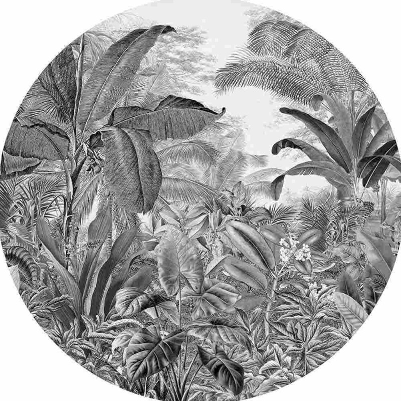 Papier peint panoramique rond intissé végétal woods noir et blanc diamètre 125 cm