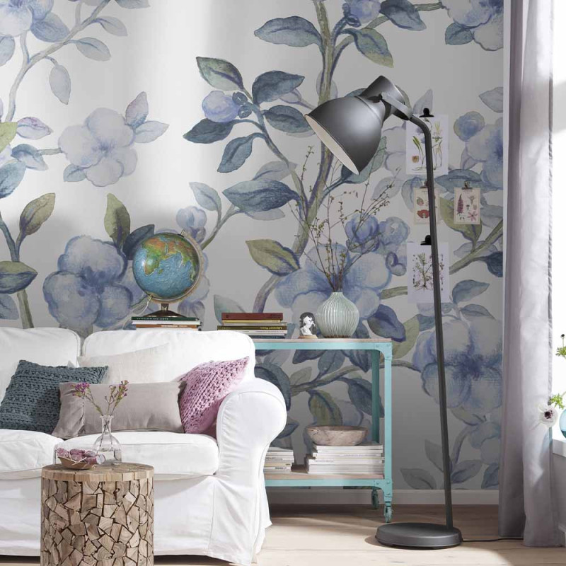 Apportez une touche de fraîcheur et de légèreté à votre intérieur avec le papier peint panoramique intissé végétal bleu...