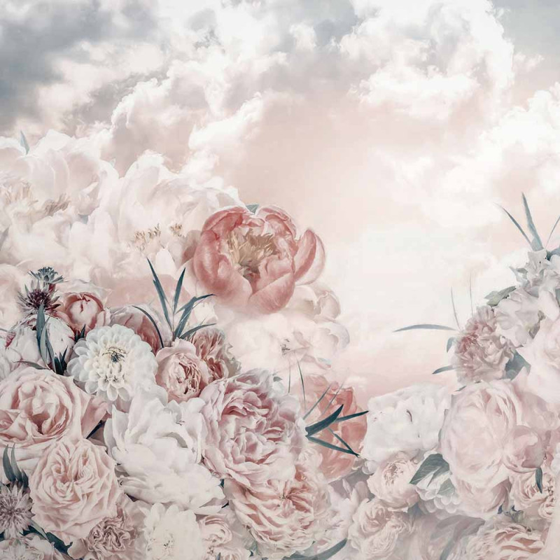 Papier peint panoramique intissé floral et nuage rose L250 x H250 cm