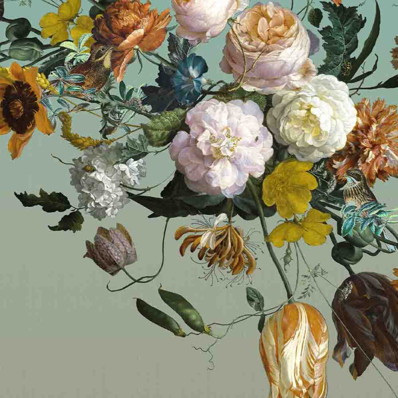 Papier peint panoramique intissé floral romantique vert sauge L200 x H250 cm