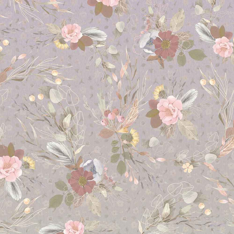 Papier peint panoramique intissé floral romantique rose L350 x H250 cm
